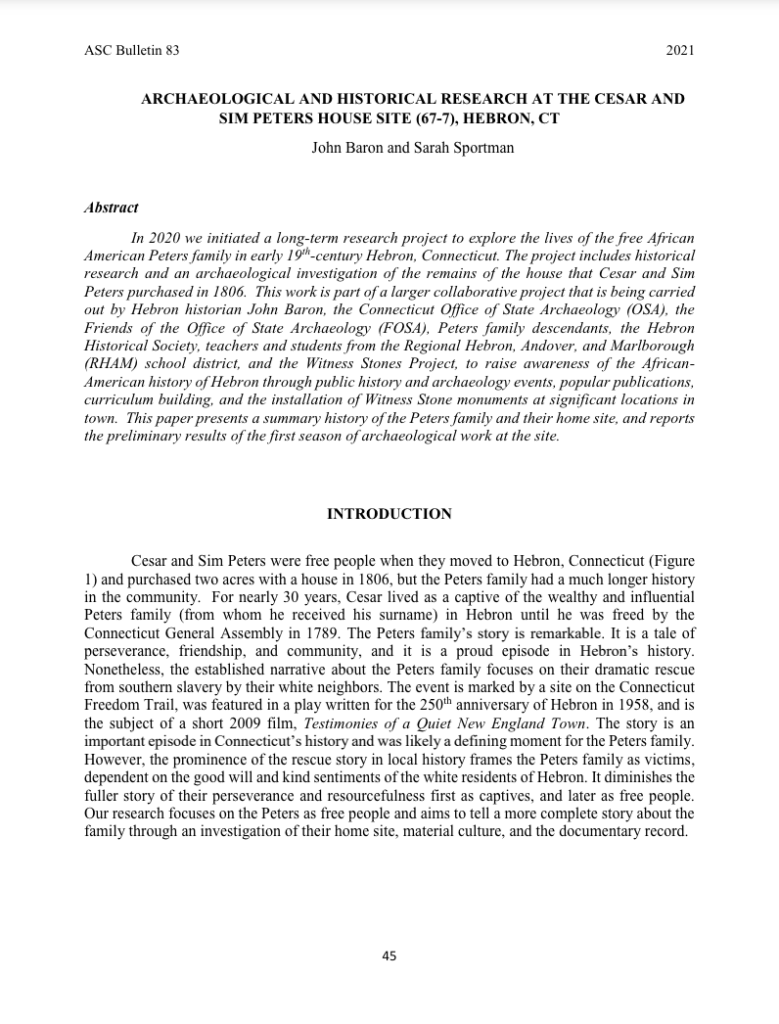 Archaeological and Historical Research at the Cesar and Sim Peters House Site, Hebron, CT WSP · Jan 1, 2021 ·