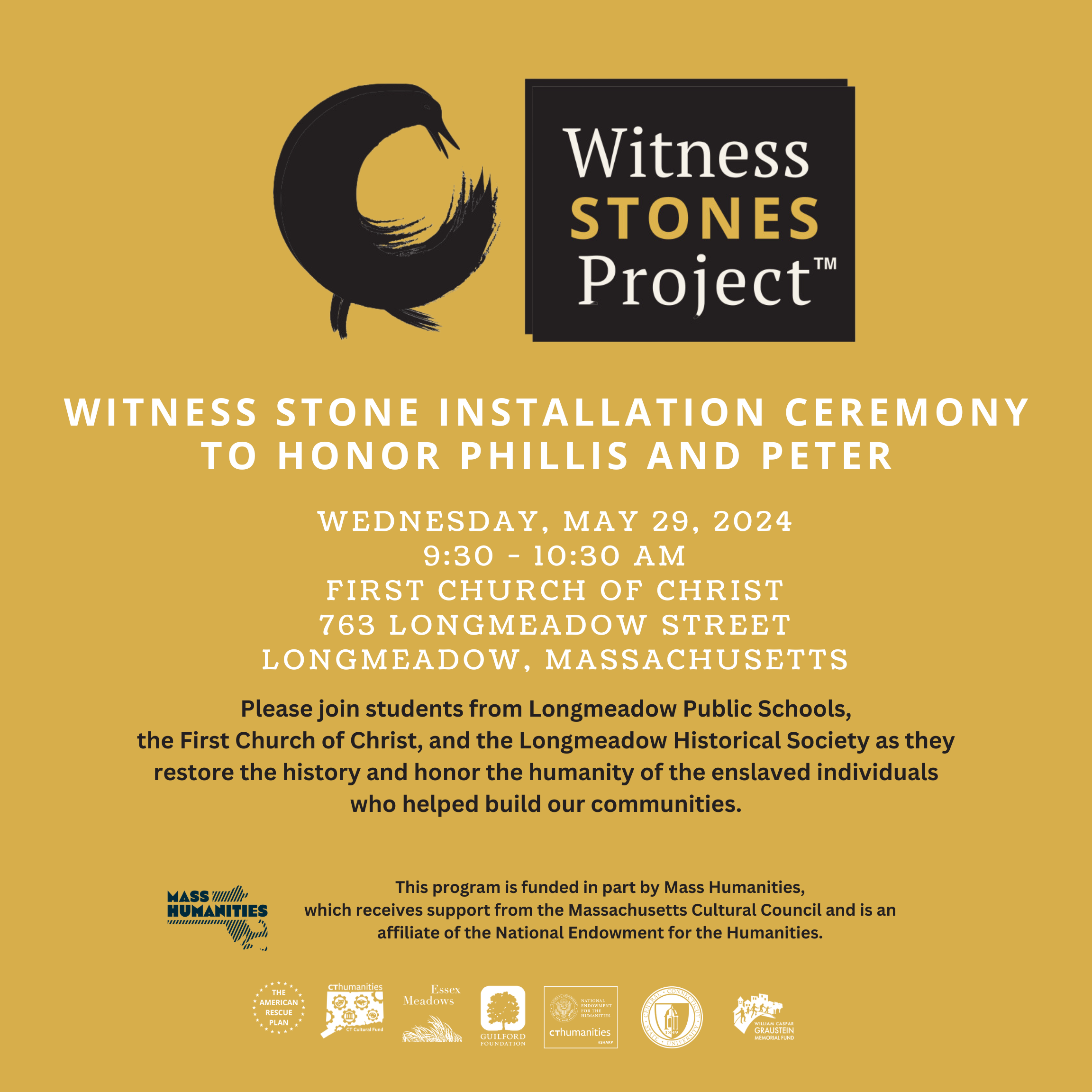 Installation Ceremony Honoring Phillis and Peter May 29, 2024 @ 9:30 am - 10:30 am First Church of Christ Longmeadow 763 Longmeadow Street, Longmeadow, MA Free