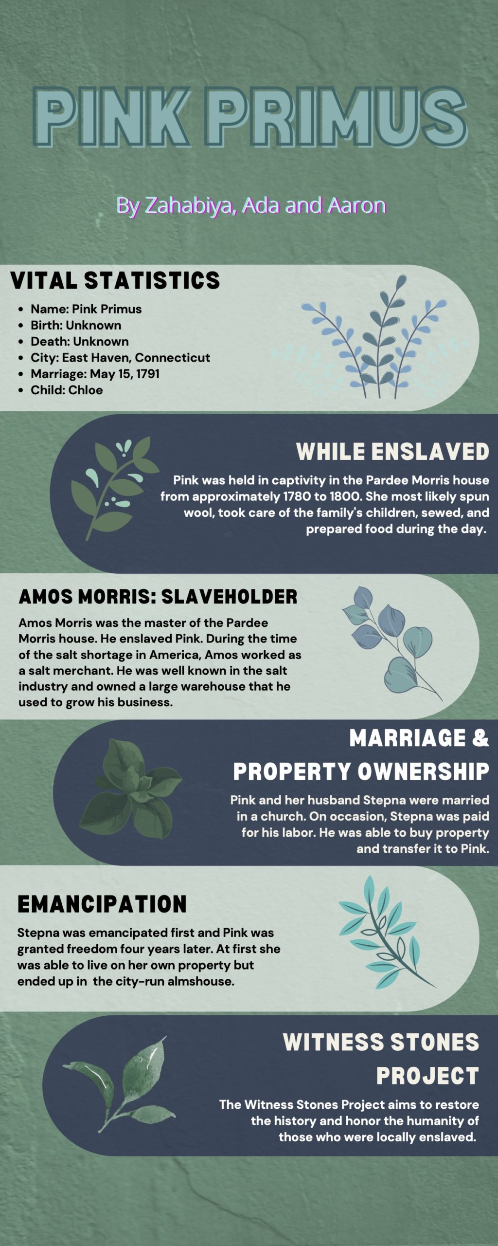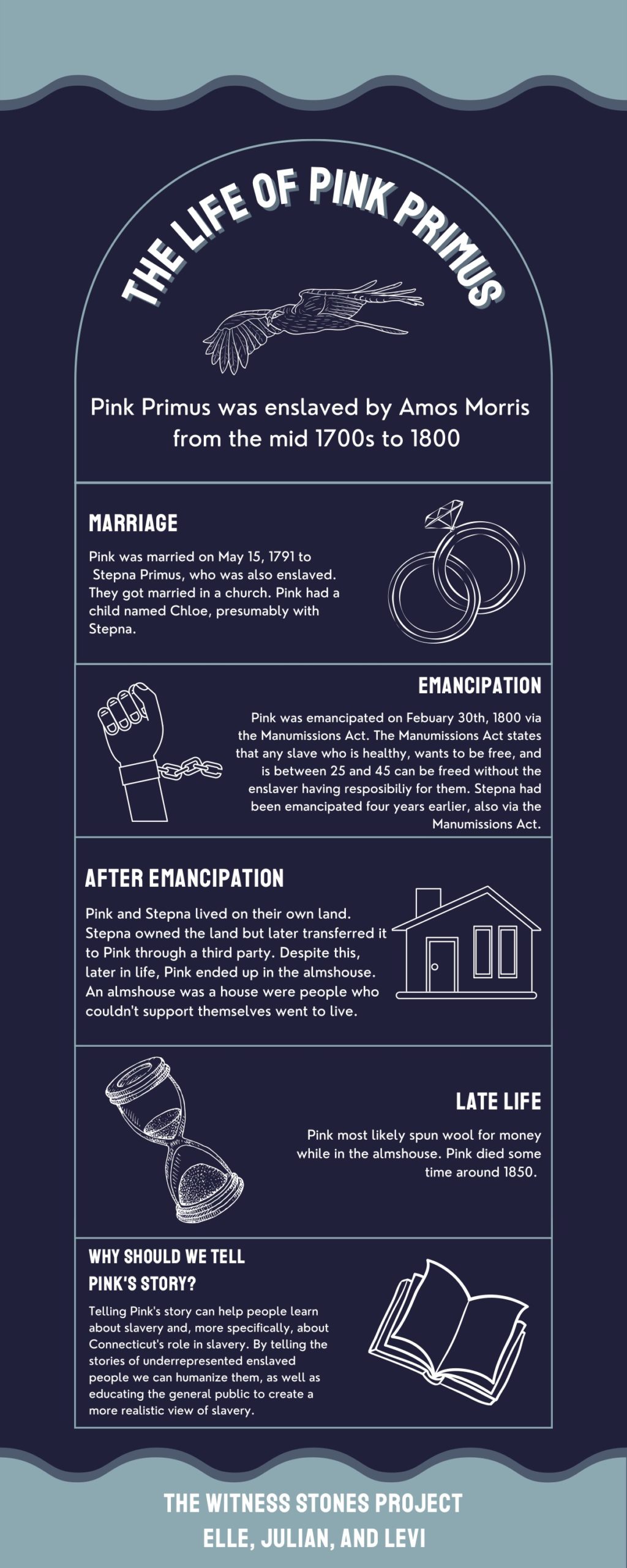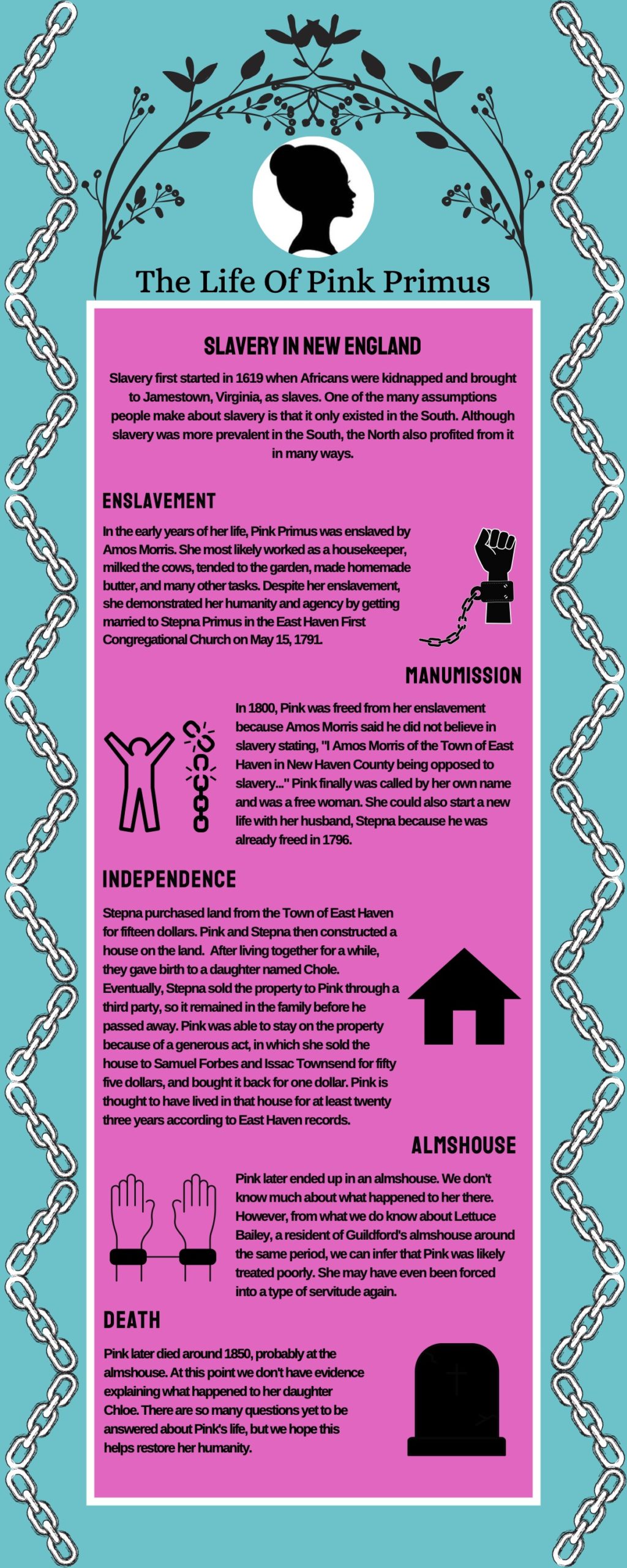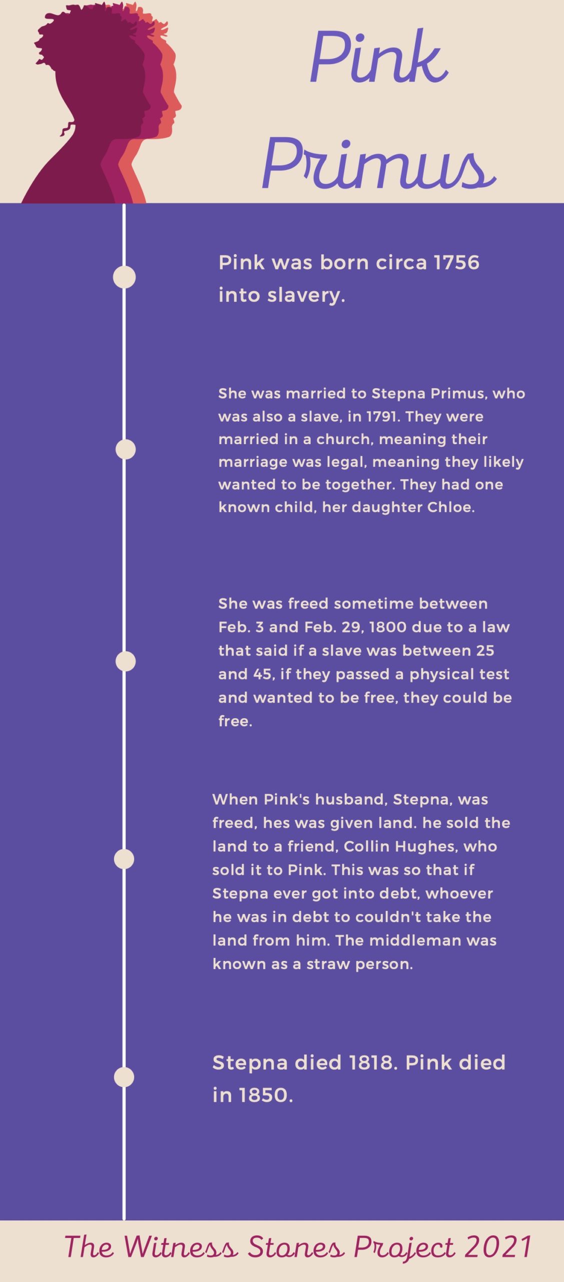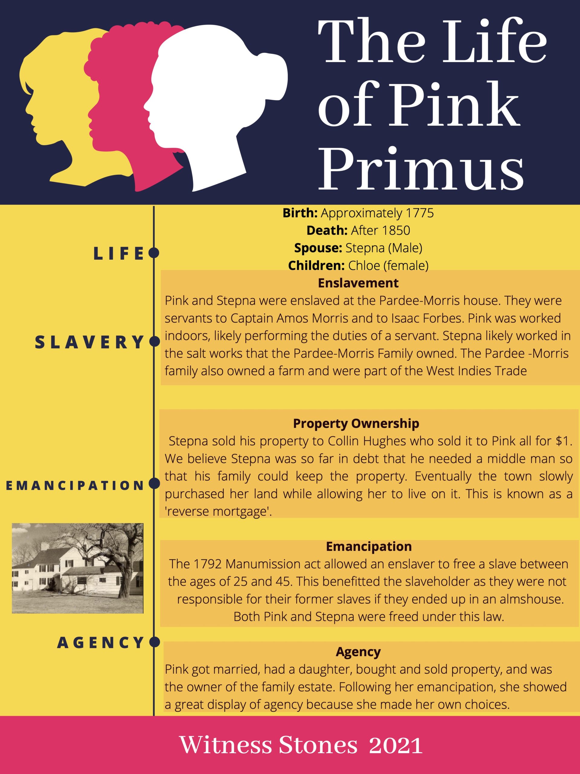 Students from the Foote School gathered at the Pardee-Morris House on June 2, 2021, to remember the life of Pink Primus. Students read original poetry and displayed the infographics they created to share the life of Pink with their community.