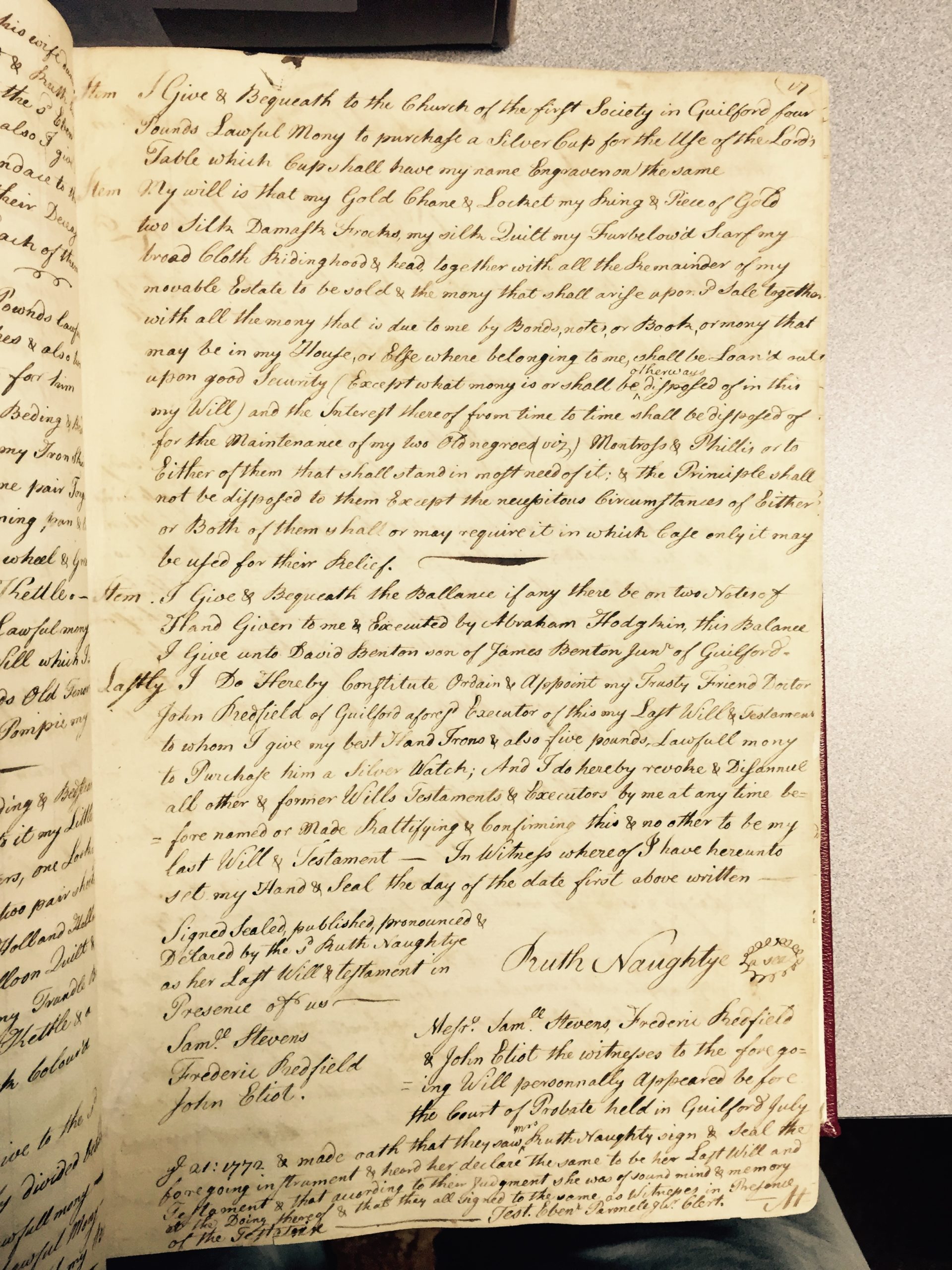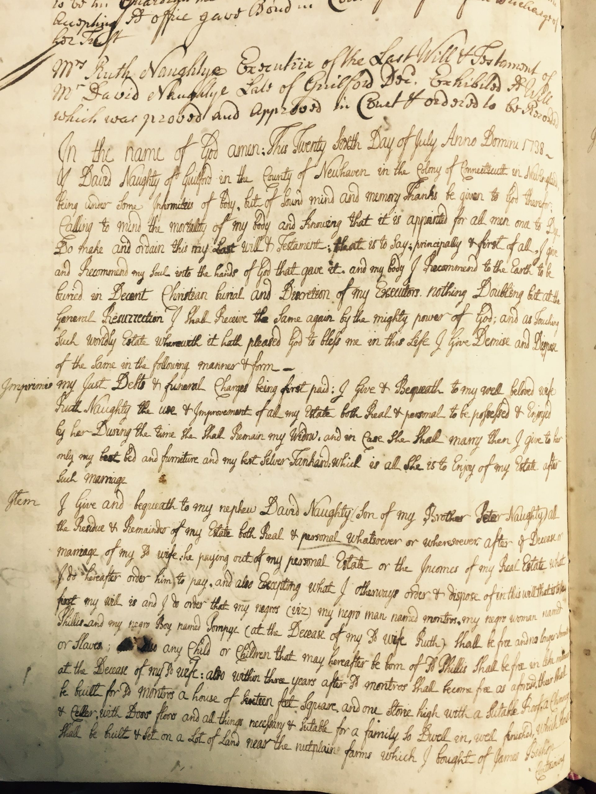 Phillis was purchased along with Montros in Boston in 1728 by David Naughty. Montros and Phillis were the parents of eight children who were all born into slavery. Only one of the children, Candace, was known to have been freed. Phillis waited thirty-three years for her freedom but died just a couple of months before it would have happened. More information on Phillis